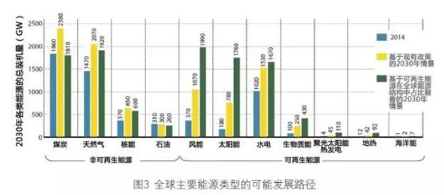 這份報告的核心結(jié)論之一就是,如果全球經(jīng)濟一直朝著無碳化的方向發(fā)展,到2030 年,風(fēng)電必將成為主力電源。國際可再生能源署認為,海上風(fēng)電的總裝機在2030 年將達到100GW,但如果能夠從政策層面使可再生能源在全球能源結(jié)構(gòu)中的占比翻番,那么到2030 年海上風(fēng)電的裝機規(guī)模有望進一步擴大——風(fēng)電總裝機將達到1990GW,其中海上風(fēng)電占280GW。